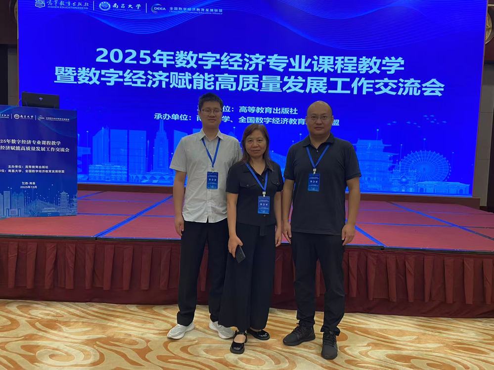 2025年10月18日至19日,数字经济专业课程教学暨数字经济赋能高质量发展工作交流会在南昌举办。此次交流会由高等教育出版社主办,南昌大学、全国数字经济教育发展联盟联合承办,旨在推进数字经济专业优质教学资源共建共享,搭建高校教师交流、沟通、研讨平台,进而促进我国数字经济教材体系的建设,优化完善高校数字人才培养方案。我院侯俊华、曾浩和彭永樟三位老师应邀参会。